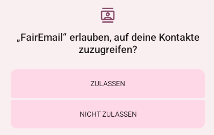 Die obere Frage sollte mit Zulassen bestätigt werden. Andernfalls hat FairMail keinen Zugriff auf die Kontakte!