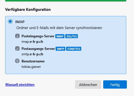 Wobei anstelle von imap und smtp auch mail.e-b-p.ch korrekt ist.